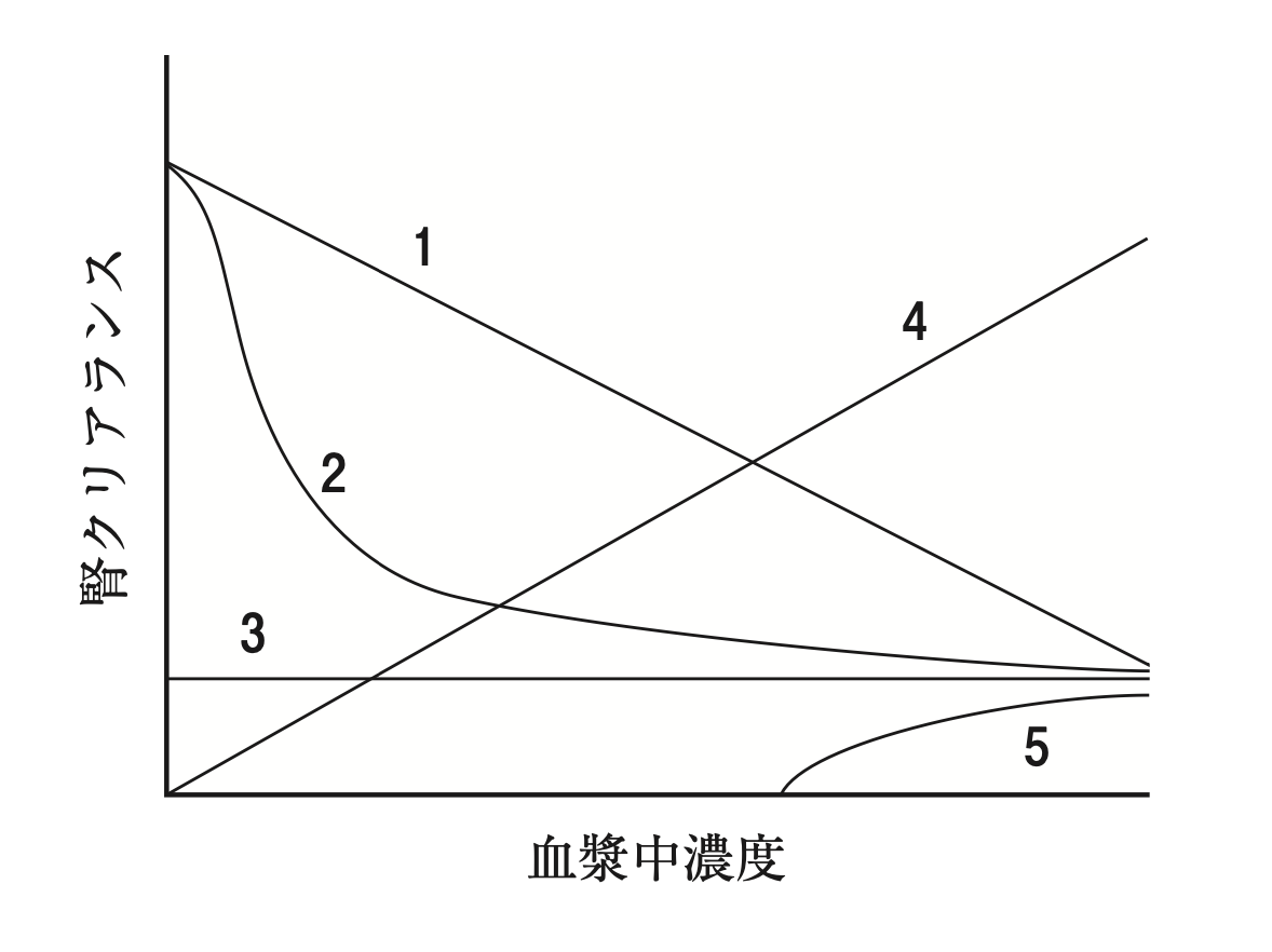 第105回薬剤師国家試験 問45 2025 1/18 第105回薬剤師国家試験 図の1〜5のうち、イヌリンの血漿中濃度と腎クリアランスとの関係を示すのはどれか。1つ選べ。 解答・解説 解答 3 解説 イヌリンの腎クリアランスは、血漿中濃度が変化しても、ほぼ一定の値を示す。これはイヌリンが血漿タンパク質にほとんど結合せず、糸球体濾過のみで尿中に排泄させるからである。 第105回薬剤師国家試験 よかったらシェアしてね! URLをコピーしました! 第105回薬剤師国家試験 問44(必須問題) 過去問解説 第105回薬剤師国家試験 問46 関連記事 第105回薬剤師国家試験 問150 2020年8月29日 第105回薬剤師国家試験 問149 2020年8月29日 第105回薬剤師国家試験 問148 2020年8月29日 第105回薬剤師国家試験 問147 2020年8月29日 第105回薬剤師国家試験 問146 2020年8月29日 第105回薬剤師国家試験 問145 2020年8月29日 第105回薬剤師国家試験 問144 2020年8月29日 第105回薬剤師国家試験 問143 2020年8月29日 コメント コメントする コメントをキャンセルコメント ※ 名前 メール サイト