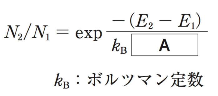 ボルツマン分布は、異なるエネルギー準位 E1、E2(E1<E2)をもつ分子の数をそれぞれN1、N2としたときの、熱平衡状態における両者の比(N2/N1)に関する情報を与える(下式参照)。
