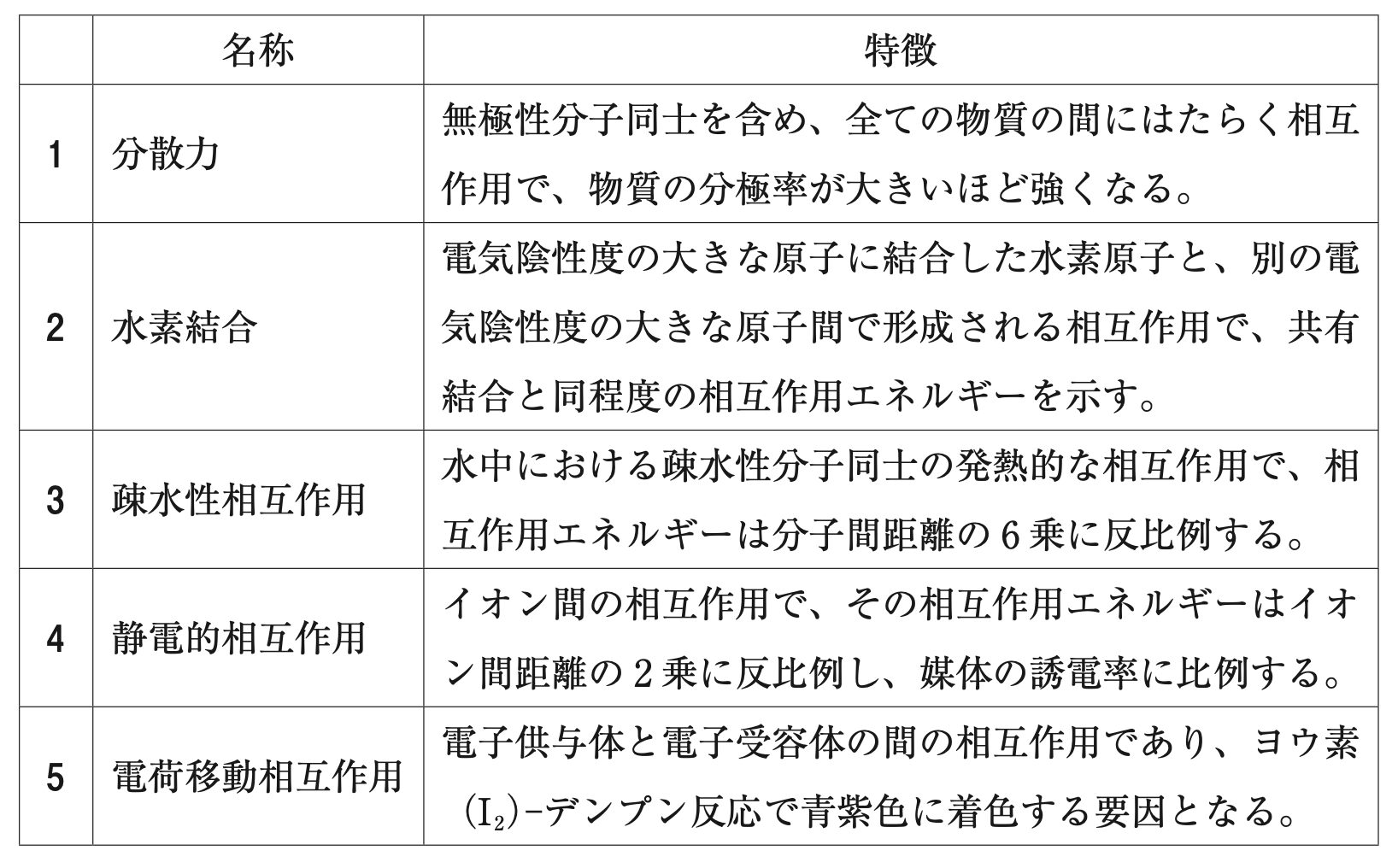分子間相互作用の名称と特徴の組合せとして正しいのはどれか。2つ選べ。