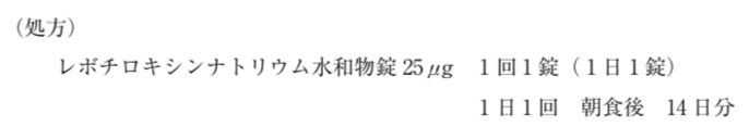 33歳女性。夫と2歳の娘との3人暮らし。 2年前に慢性甲状腺炎(橋本病)と診断されて経過観察していたが、最近、疲れやすさ、皮膚の乾燥、便秘などの症状が現れるようになった。病院で検査を受けた結果、今回から薬物治療が開始になり、検査値が記載された処方箋を薬局に持参した。