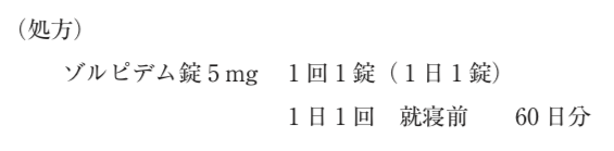 58歳男性。不眠のため心療内科を受診し、以下の処方箋を持って保険薬局を訪れた。薬剤師がゾルピデム錠の添付文書を確認したところ、ゾルピデム錠は向精神薬であり、医療保険制度上、30日の処方日数の上限があることが判明した。