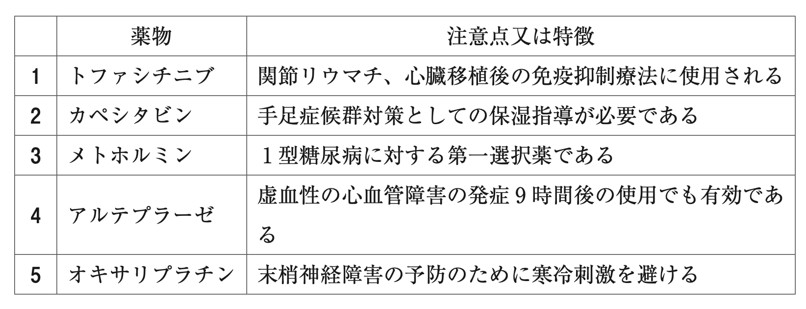 特にリスクの高い薬物とその注意点又は特徴の組合せのうち、正しいのはどれか。2つ選べ。
