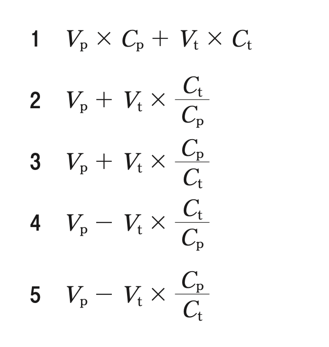 第106回薬剤師国家試験 問43 2025 1/18 第106回薬剤師国家試験 薬物が血漿と組織に分布するとき、分布容積を表す式はどれか。1つ選べ。 ただし、血漿容積を Vp、組織容積を Vt、薬物の血漿中濃度を Cp、薬物の組織中濃度 を Ct とする。 解答・解説 解答 2 解説 薬物が血漿と組織のみに分布する場合、体内薬物量(X)は血漿中薬物量(Xp)と組織中薬物(Xt)の総和となる。 X=Xp+Xt また、薬物量は濃度と分布容積の積より求めることができるため、血漿中薬物量(Xp)と組織中薬物量(Xt)は下記の式で表される。 Xp=血漿中濃度(Cp)×血漿容積(Vp) Xt=組織中濃度(Ct)×組織容積(Vt) そのため、体内薬物量(X)は、X=Xp+Xt=Cp・Vp+Ct・Vtとなる。 このことから、分布容積(Vd)は、下記の式で表すことができる。 第106回薬剤師国家試験 よかったらシェアしてね! URLをコピーしました! 第106回薬剤師国家試験 問188 第106回薬剤師国家試験 問44 関連記事 第106回薬剤師国家試験 問244〜245(実践問題) 飲料水の水質検査 2023年2月17日 第106回薬剤師国家試験 問242〜243(実践問題) PET/CT 2023年2月17日 第106回薬剤師国家試験 問240〜241(実践問題) 特定保健用食品 2023年2月17日 第106回薬剤師国家試験 問238〜239(実践問題) 遺伝子的検査 2023年2月17日 第106回薬剤師国家試験 問105(理論問題) バイオアイソスター 2023年2月17日 第106回薬剤師国家試験 問104(理論問題) シメチジンの合成反応 2023年2月17日 第106回薬剤師国家試験 問102(理論問題) 酸・塩基の強弱 2023年2月17日 第106回薬剤師国家試験 問101(理論問題) ビタミンB12 2023年2月17日 コメント コメントする コメントをキャンセルコメント ※ 名前 メール サイト