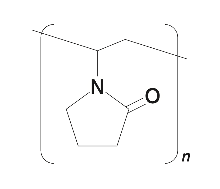 ポビドンは、1−ビニル−2−ピロリドンから成る合成高分子であり、主に懸濁化剤、結合剤として用いられる。