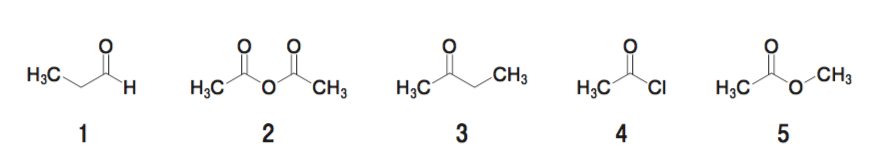 求核剤に対する反応性が最も高いカルボニル化合物はどれか。1つ選べ。