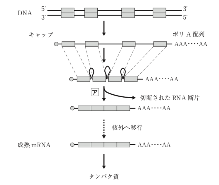 第107回薬剤師国家試験 問13 2025 1/18 第107回薬剤師国家試験 図は、真核生物においてDNA上の遺伝子からタンパク質が作られるまでの過程を示している。矢印「ア」で示す反応はどれか。1つ選べ。 転写 逆転写 スプライシング RNA干渉 翻訳 解答・解説 解答 3 解説 第107回薬剤師国家試験 よかったらシェアしてね! URLをコピーしました! 第107回薬剤師国家試験 問12(理論問題) 尿素回路 第107回薬剤師国家試験 問116 関連記事 第107回薬剤師国家試験 問345(実践問題) 解毒薬 2023年3月9日 第107回薬剤師国家試験 問344 頻脈性不整脈 2023年3月9日 第107回薬剤師国家試験 問343(実践問題) NPC/N比 2023年3月9日 第107回薬剤師国家試験 問342(実践問題) 計量調剤 2023年3月9日 第107回薬剤師国家試験 問341(実践問題) 計量調剤 2023年3月9日 第107回薬剤師国家試験 問340(実践問題) 食中毒 2023年3月9日 第107回薬剤師国家試験 問339(実践問題) 治療薬物モニタリング(TDM) 2023年3月9日 第107回薬剤師国家試験 問338(実践問題) マイコプラズマ肺炎 2023年3月9日 コメント コメントする コメントをキャンセルコメント ※ 名前 メール サイト