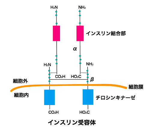 - インスリン受容体が刺激されると、インスリン受容体βサブユニットの自己リン酸化が起こる。
