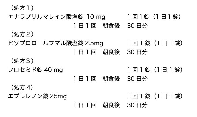 - 今後、処方1や処方4の薬剤により血清カリウム値が上昇しすぎないか注意する。