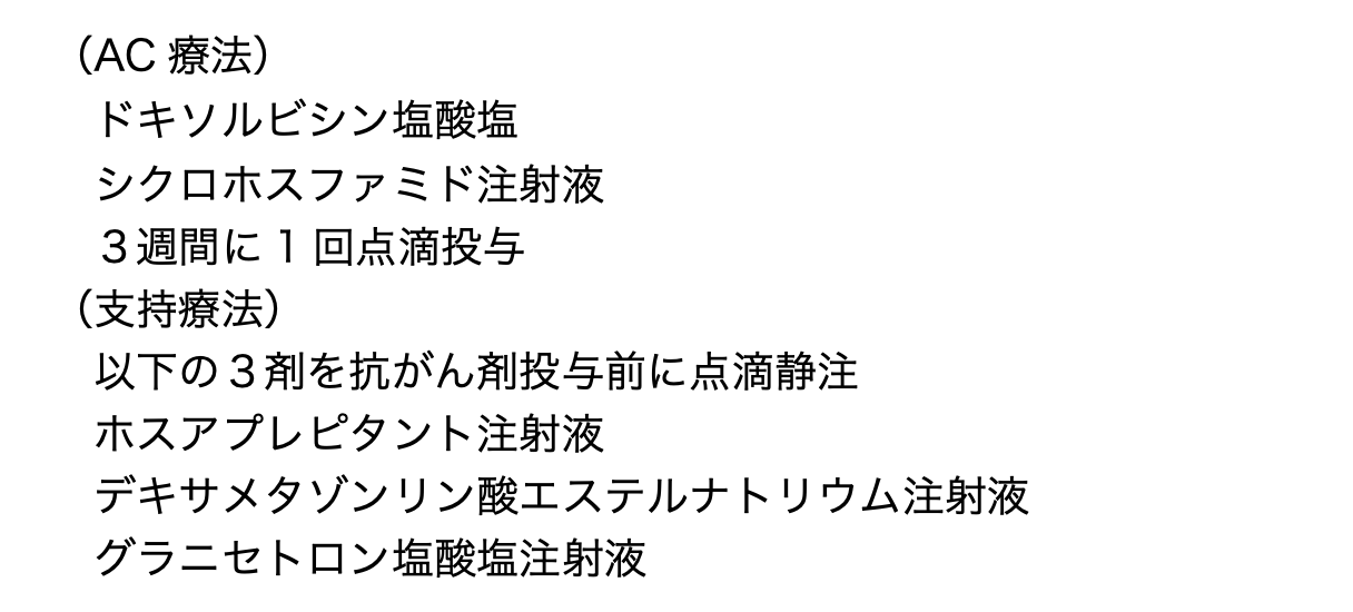 43歳女性。入院精査の結果、右乳がんのため、術前化学療法としてAC療法が開始となった。