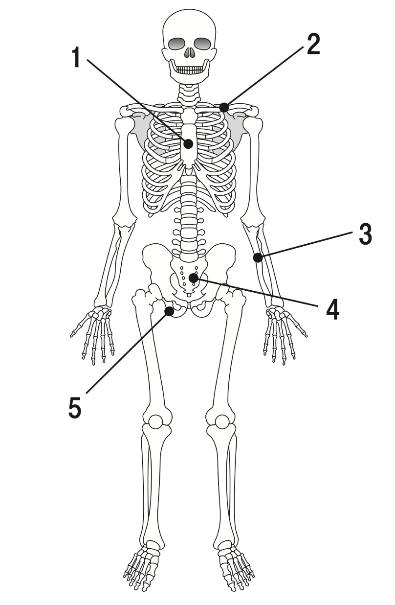 第108回薬剤師国家試験 問11 人体骨格 2025 1/17 第108回薬剤師国家試験 下図は、人体骨格の模式図である。1~5のうち、仙骨はどれか。1つ選べ。 解答・解説 解答 4 解説動画 解説 1:胸骨 2:鎖骨 3:尺骨 4:仙骨 5:坐骨 第108回薬剤師国家試験 よかったらシェアしてね! URLをコピーしました! 第108回薬剤師国家試験 問111 生体内の物質移動 第108回薬剤師国家試験 問12 心臓血管中枢(血管運動中枢) 関連記事 第108回薬剤師国家試験 問124 生活習慣病 2024年5月30日 第108回薬剤師国家試験 問173 2024年5月20日 第108回薬剤師国家試験 問109 2024年5月20日 第108回薬剤師国家試験 問108 2024年5月20日 108回薬剤師国家試験 問104 2024年5月20日 第108回薬剤師国家試験 問101 2024年5月20日 第108回薬剤師国家試験 問9 2024年5月20日 第108回薬剤師国家試験 問7 2024年5月20日 コメント コメントする コメントをキャンセルコメント ※ 名前 メール サイト