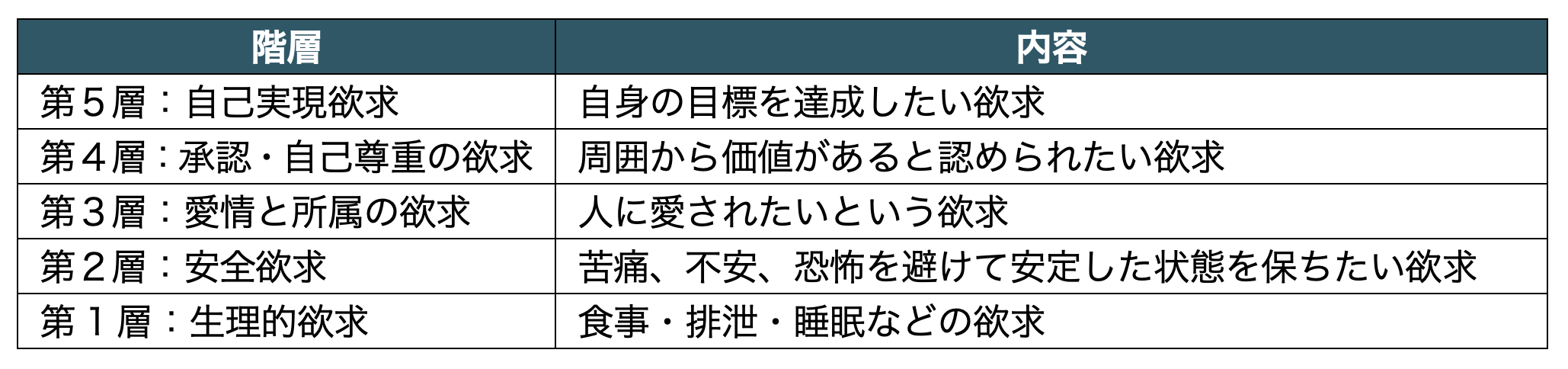第108回薬剤師国家試験 問150 マズローの欲求 2025 1/17 第108回薬剤師国家試験 マズローの欲求の階層説において第1層にあたる欲求はどれか。1つ選べ。 苦痛、不安、恐怖を避けて安定した状態を保ちたい欲求 人に愛されたいという欲求 周囲から価値があると認められたい欲求 自身の目標を達成したい欲求 食事・排泄・睡眠などの欲求 解答・解説 解答 5 解説動画 解説 マズローの欲求5段階仮説とは、心理学者のアブラハム・マズローが提唱した仮説であり、人間の欲求を生理的欲求、安全欲求、社会的欲求、承認欲求、自己実現欲求の5段階で構成されていることを示したものである。 第108回薬剤師国家試験 よかったらシェアしてね! URLをコピーしました! 第108回薬剤師国家試験 問149 薬価基準制度 第108回薬剤師国家試験 問306〜307 重篤副作用疾患別マニュアル/副作用 関連記事 第108回薬剤師国家試験 問124 生活習慣病 2024年5月30日 第108回薬剤師国家試験 問173 2024年5月20日 第108回薬剤師国家試験 問109 2024年5月20日 第108回薬剤師国家試験 問108 2024年5月20日 108回薬剤師国家試験 問104 2024年5月20日 第108回薬剤師国家試験 問101 2024年5月20日 第108回薬剤師国家試験 問9 2024年5月20日 第108回薬剤師国家試験 問7 2024年5月20日 コメント コメントする コメントをキャンセルコメント ※ 名前 メール サイト