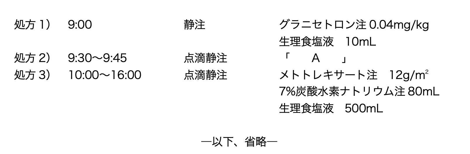 第108回薬剤師国家試験 問66 メトトレキサート・ホリナート救援療法 2025 1/17 第108回薬剤師国家試験 以下は骨肉腫に対するメトトレキサート・ホリナート救援療法の初日の処方例である。副作用回避の目的で用いる薬剤Aとして最も適切なのはどれか。1つ選べ。 アセタゾラミドナトリウム注 ピペラシリンナトリウム注 フィルグラスチム(遺伝子組換え)注 フロセミド注 メスナ 解答・解説 解答 1 解説動画 第108回薬剤師国家試験 よかったらシェアしてね! URLをコピーしました! 第108回薬剤師国家試験 問65 光線過敏症 第108回薬剤師国家試験 問68 漢方薬 関連記事 第108回薬剤師国家試験 問124 生活習慣病 2024年5月30日 第108回薬剤師国家試験 問173 2024年5月20日 第108回薬剤師国家試験 問109 2024年5月20日 第108回薬剤師国家試験 問108 2024年5月20日 108回薬剤師国家試験 問104 2024年5月20日 第108回薬剤師国家試験 問101 2024年5月20日 第108回薬剤師国家試験 問9 2024年5月20日 第108回薬剤師国家試験 問7 2024年5月20日 コメント コメントする コメントをキャンセルコメント ※ 名前 メール サイト