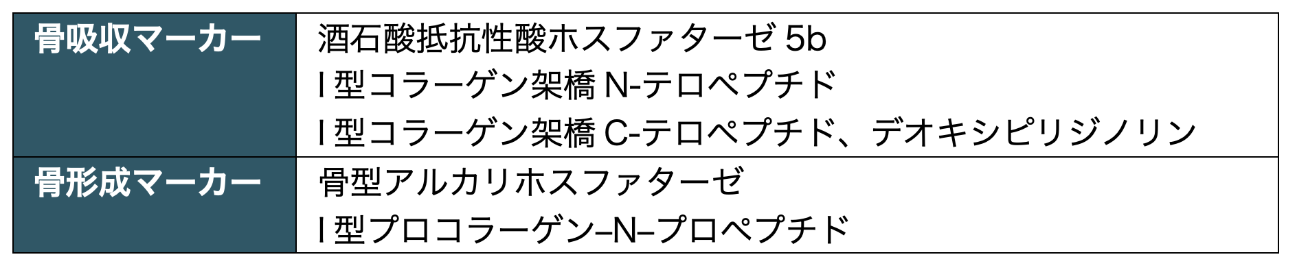 骨代謝マーカーには骨吸収マーカー、骨形成マーカーがあり、骨折リスクの予測に有用である。