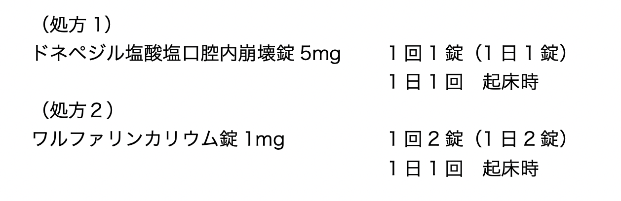 男性は、次第に歩行が拙劣になり、夜間にトイレでつまづいて転倒し、腰椎圧迫骨折と診断された。痛みのため歩行や長時間の起き上がりは困難でありベッド上の生活となった。ヘルパーの介助を受け服薬しているが、ヘルパーのいない起床時の薬は自分でほぼ服用できていない。