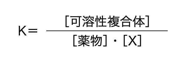 - Kの値が小さいほど、薬物とXは安定な可溶性複合体を形成する。