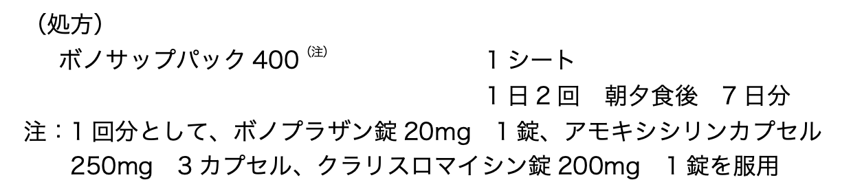 48歳男性。2ヶ月前から食欲の低下を感じ、消化器内科で精査したところ、ヘリコバクター・ピロリ陽性と診断され、一次除菌を行うこととなった。