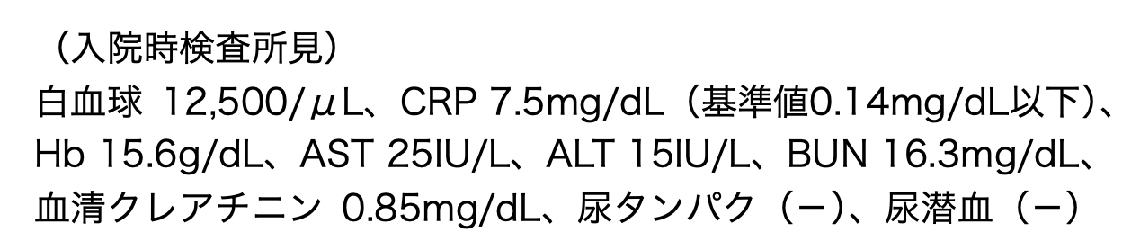 - 腎機能が低下し、腎梗塞の合併が疑われる。