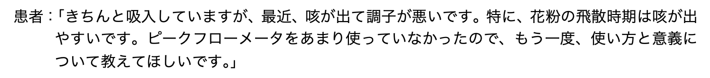 - ピークフローメータは深呼吸をしてから口に加え、毎回同じ姿勢で測定する。