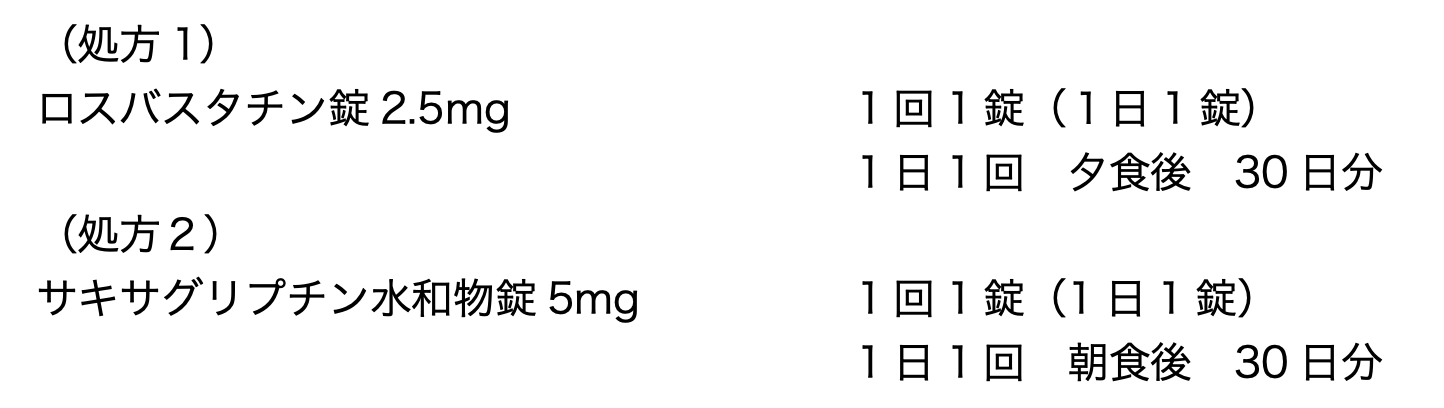 - 情報提供書案:処方1の薬剤について1日1回朝食後に変更の提案をすること