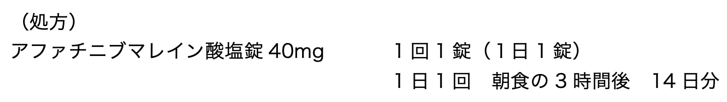 薬歴にはジフェンヒドラミン塩酸塩、レボフロキサシン、ロキソプロフェンが3週毎に処方されており、これらは一般的に抗がん剤治療に伴う副作用(過敏症状や発熱、感染症)への対症療法であると考えられる。一方、今回の処方薬「アファチニブ」はEGFR遺伝子変異陽性非小細胞肺がんに対する分子標的治療薬であり、抗がん剤治療の後に導入されることが多い薬剤である。