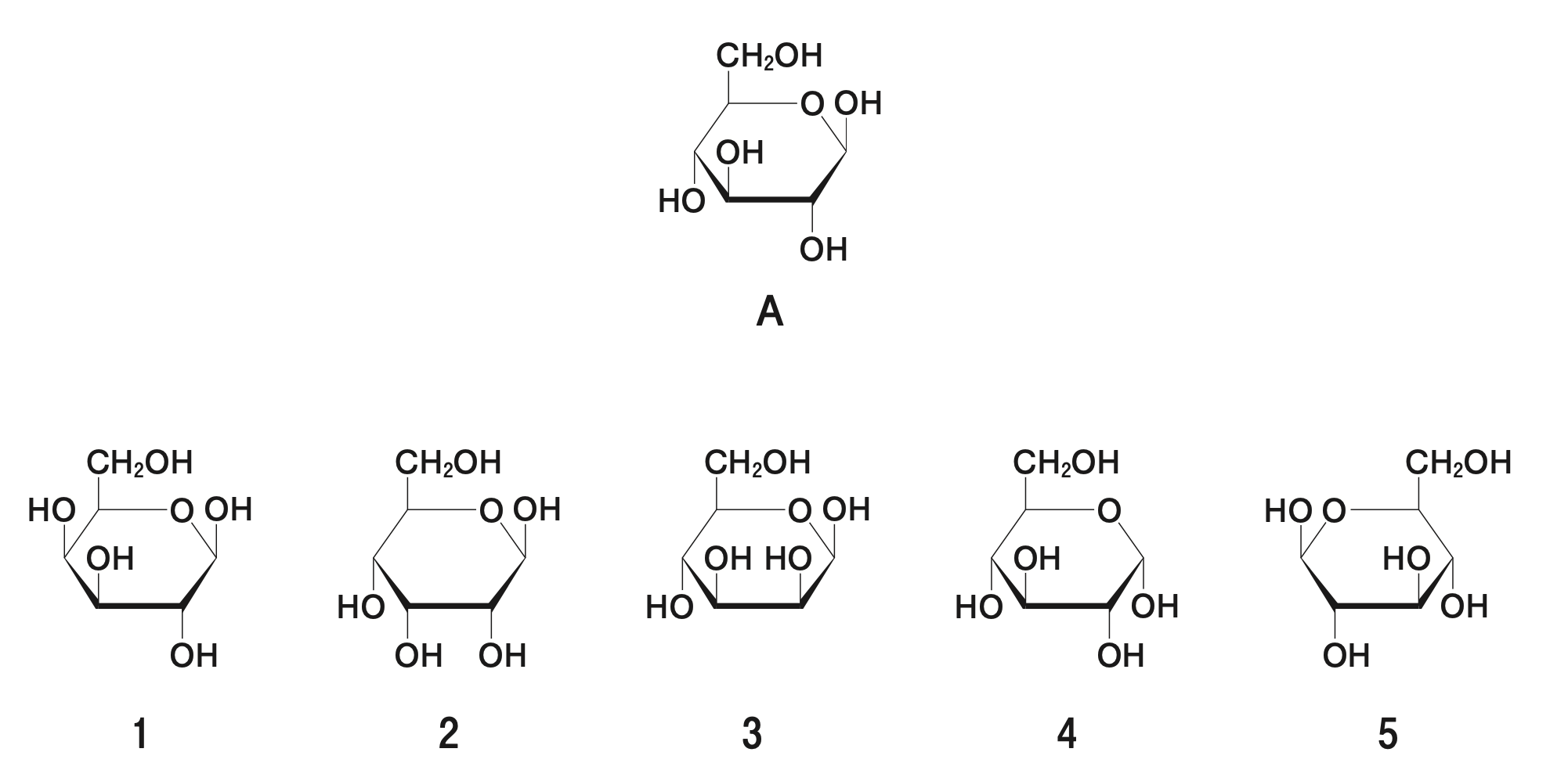 以下のアルドヘキソースAのアノマーはどれか。1つ選べ。
