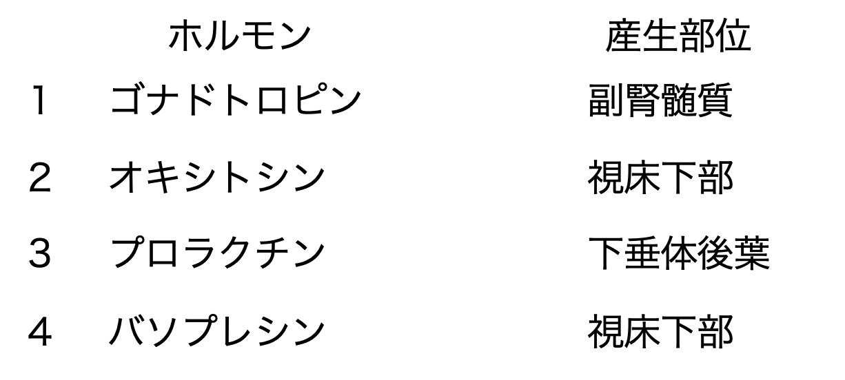 オキシトシンは、ペプチド性ホルモンであり、視床下部で産生され、下垂体後葉に運搬された後、下垂体後葉から分泌される下垂体後葉ホルモンである。