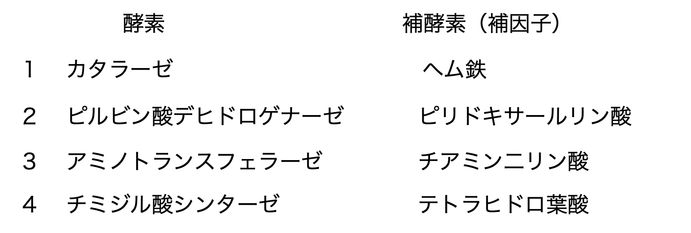 酵素と補酵素(補因子)との対応のうち、正しいのはどれか。2つ選べ。