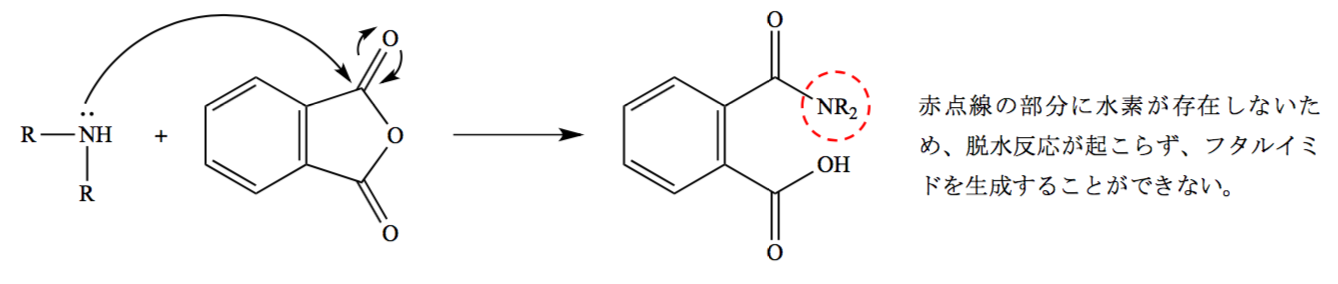 第二級アミンに無水フタル酸を反応させても、フタルイミドは生成しない。