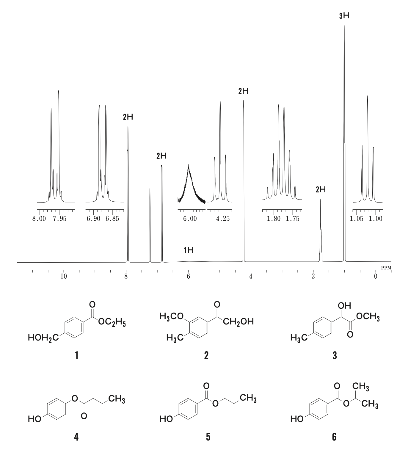 ・1.8 ppm付近に2H分のマルチプレットがあることから、構造中に−CH2CH2−CH3があると考えられる。