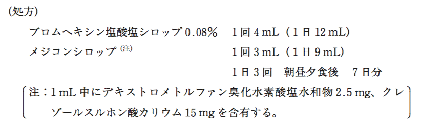 10歳女児。上気道炎で、咳と痰がひどいため以下の薬剤が処方された。