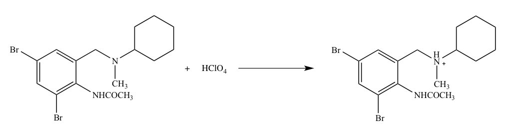 上記の反応より、ブロムヘキシンと過塩素酸は1:1で反応する。