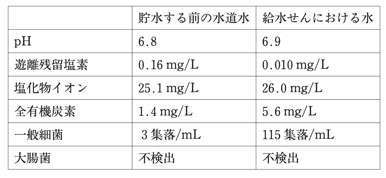 - 貯水する前の水道水が汚染されているおそれがある。