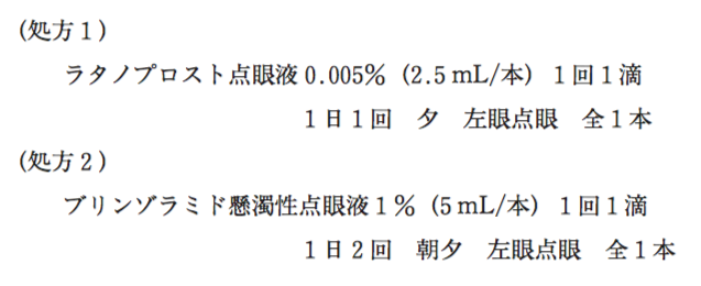 47歳女性。眼科外来にて、以下の薬剤が処方された。