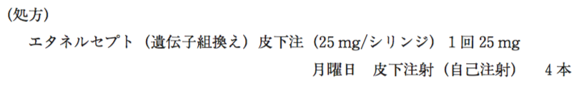 45歳女性。関節リウマチの治療を受けていたが、既存治療では効果不十分であったため、処方変更となり以下の処方せんを持って薬局を訪れた。