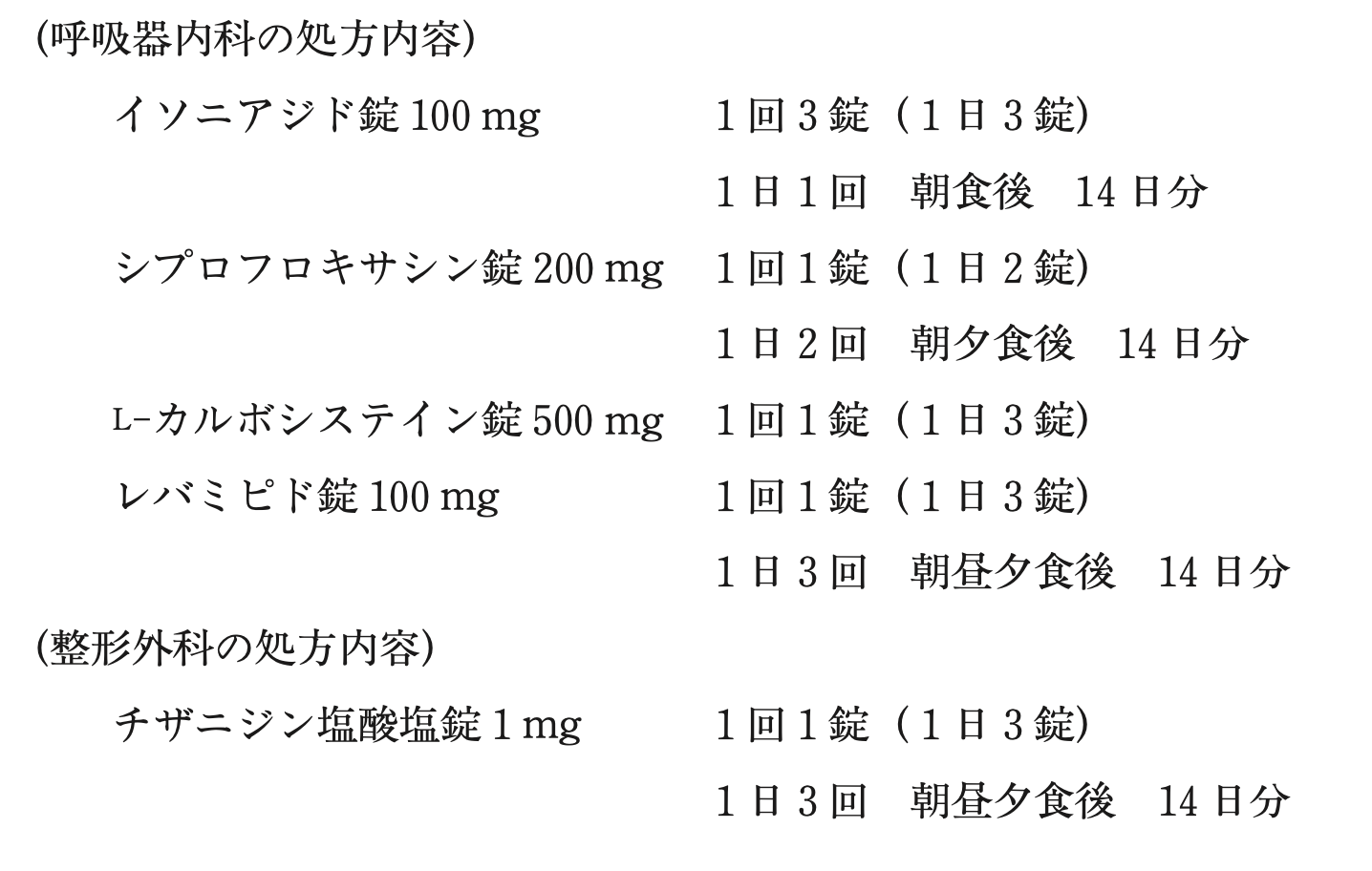 65歳男性。保険薬局に異なる診療科の処方せんを同時に持参した。