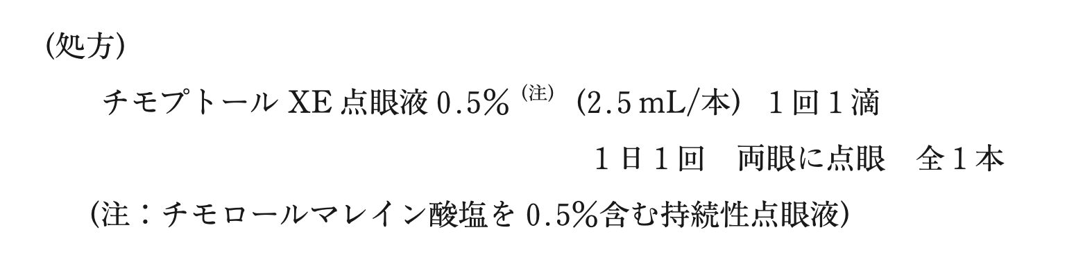 75歳男性。血糖コントロール不良で入院した。眼底検査のために眼科を受診したところ、眼圧上昇が認められたので、以下の薬剤が処方された。