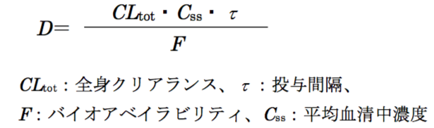 繰り返し経口投与時の経口投与量D(mg)は、次式で表される。