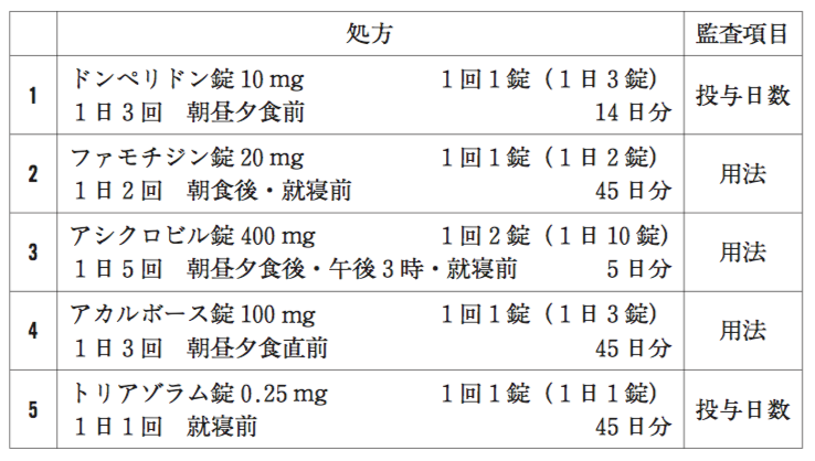 保険調剤において医師への照会対象となる処方内容はどれか。1つ選べ。ただし、監査項目欄に示した項目以外に疑義はないものとする。