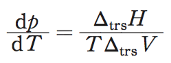 ΔtrsV:相転移に伴う体積変化、p:圧力、T:温度、ΔtrsH:相転移に伴うエンタルピー変化