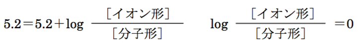 - pH5.2の溶液中では、分子形の薬物のみが存在する。