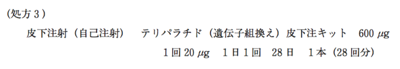 処方3のテリパラチド製剤に関する記述のうち、適切なのはどれか。2つ選べ。