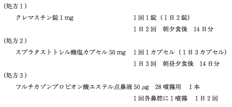 - 処方1をクロルフェニラミン製剤へ変更。