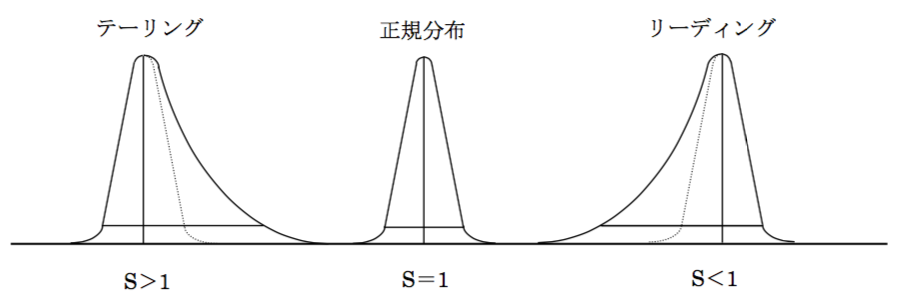 - テーリングしたピークのシンメトリー係数(S)は、1.0より小さい。