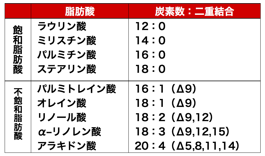 単結合のみから成る飽和脂肪酸と二重結合を含む不飽和脂肪酸に分類される