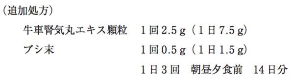 追加処方であるブシ末の副作用として、心悸亢進(動悸など)、のぼせ、舌のしびれ、悪心などが現れることがある。