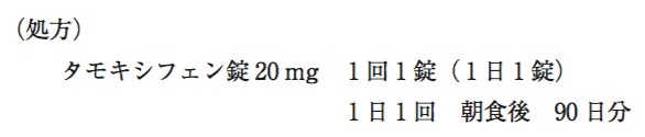 48歳女性。既往歴 乳がん、StageⅠ。2年前の術後より再発予防の目的で以下のホルモン療法を受けている。