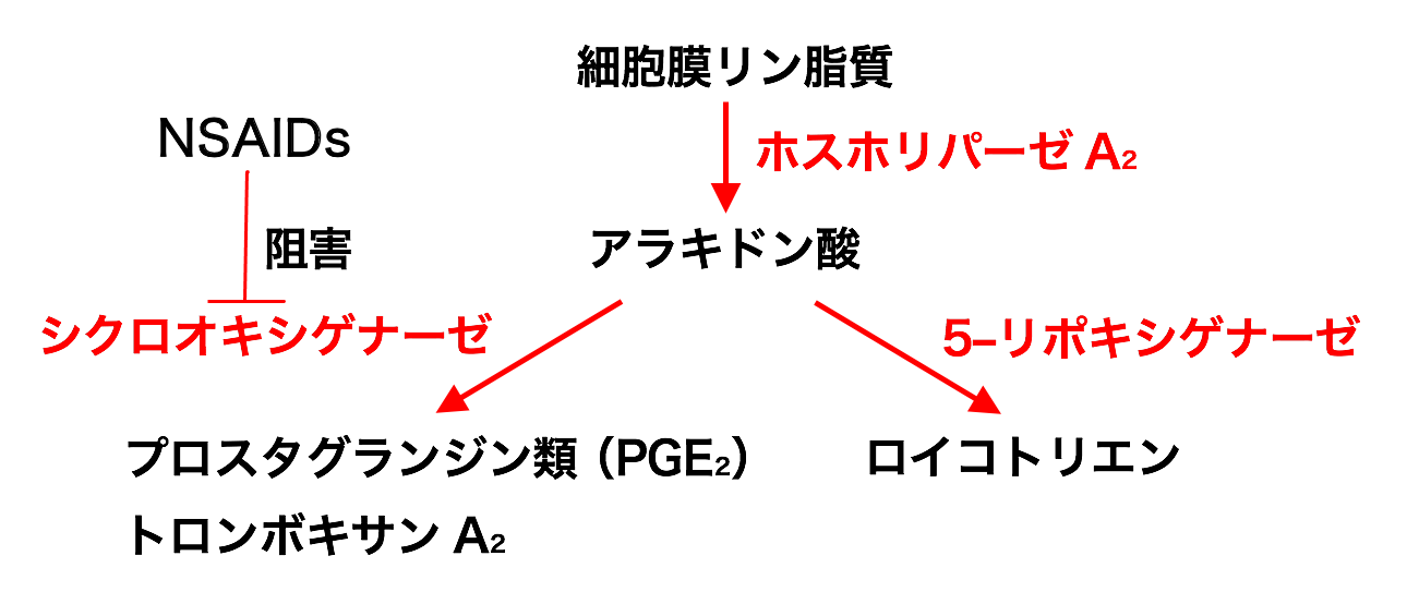 プロスタグランジン合成阻害作用により抗炎症、鎮痛及び解熱作用が現れると考えられている